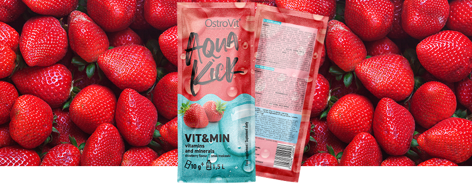 OstroVit Aqua Kick VIT&MIN ist ein umfassendes Nahrungsergänzungsmittel, das eine Quelle für wertvolle Vitamine und Mineralien ist. Das ist eine Zubereitung mit einem köstlichen Erdbeergeschmack, die in einer praktischen Pulverform erhältlich ist. Das ist ein Produkt, das für Menschen entwickelt wurde, die ihre tägliche Ernährung mit wertvollen Mikronährstoffen ergänzen möchten.